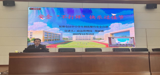 为切实筑牢中小学生节日安全防线,引导学生安全、文明、环保过节,12月23日,昆区应急管理局走进校园,开展以烟花爆竹安全为主题的宣讲活动,向师生普及烟花爆竹安全知识。