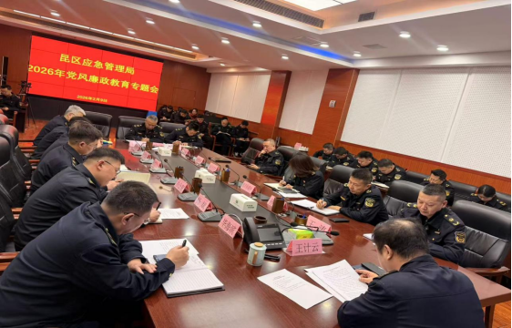 为深入贯彻落实全局党员领导干部警示教育大会精神,坚定不移推进全面从严治党向纵深发展。2月9日,昆区应急管理局召开2026年全面从严治党暨党风廉政建设工作会议。局党委书记、局长王计云会上传达了习近平总书记在全会上的重要讲话精神,对深入学习贯彻习近平总书记在二十届中央纪委五次全会上的重要讲话和会议精神提出要求。局党委书记、局长王计云给大家讲了一趟党风廉政教育课。并通过观看警示教育片、学习传达文件精神、节前廉政提醒等形式,给全体党员干部职工上好新年党风廉政“第一课”。