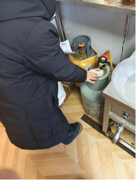 1.2月8日,区商务招商局对辖区内7家餐饮店铺开展复查,通过实地查看店铺灭火器巡检记录、年检和压力标识,安全指示灯、应急照明灯,燃气报警器等关键点,确保商户安全工作落实到位。