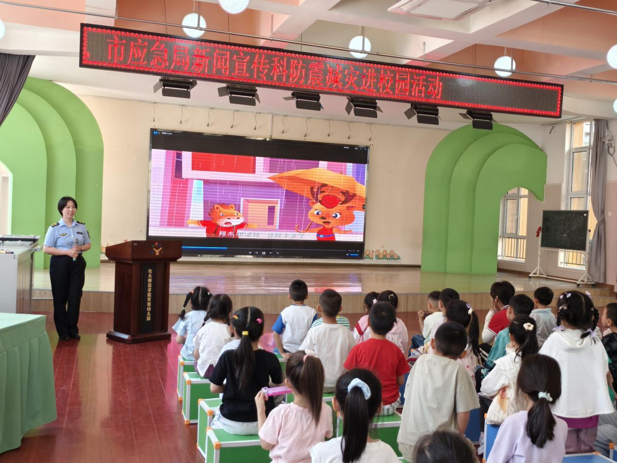 为提升幼儿防灾避险能力,筑牢校园安全防线,5月27日,包头市应急管理局联合包头市地震局走进包头师范学院实验幼儿园,开展以“防震演练筑防线 安全同行护校园”为主题的幼儿防灾避险主题教育活动,通过安全科普知识宣讲、趣味互动、观看安全科普动漫、应急疏散演练等方式,为孩子们带来一堂生动的安全课。