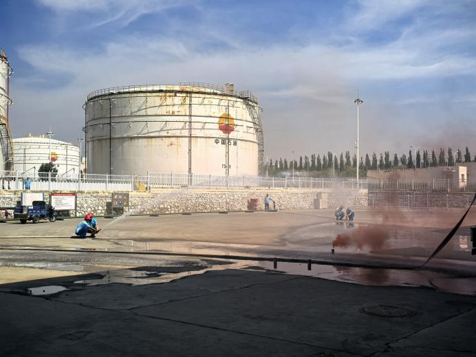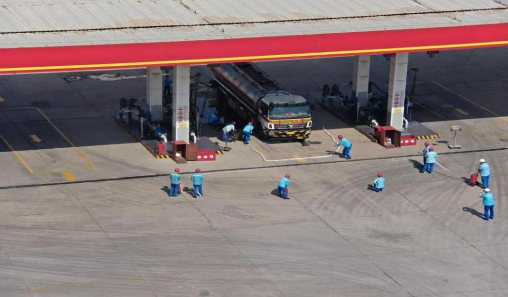 演练模拟中国石油内蒙古包头销售分公司新贤城油库油罐车在公路付油过程中,发生92#汽油溢油事故。在对泄漏油品进行处置回收过程中因静电引起地面和槽车起火。演练涵盖预警报告、先期处置、联动救援、人员疏散、应急医疗处置等环节,参演人员超30人。通过“实景模拟+实战指挥”,有效检验了油库“一企一策”以及应急预案的实用性、部门协同的流畅性和救援队伍的快速反应能力。